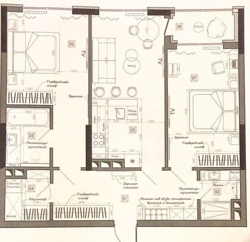 In the apartment 2 separate rooms and living room-studio spacious loggia, 2 bathrooms, laundry room with washer and dryer and with places to store things Bedroom with a double bed, a large closet with a bathroom with a bathtub; the second room is free - either office or nursery. Windows in the direction of the Central Park and Boulevard of fountains.