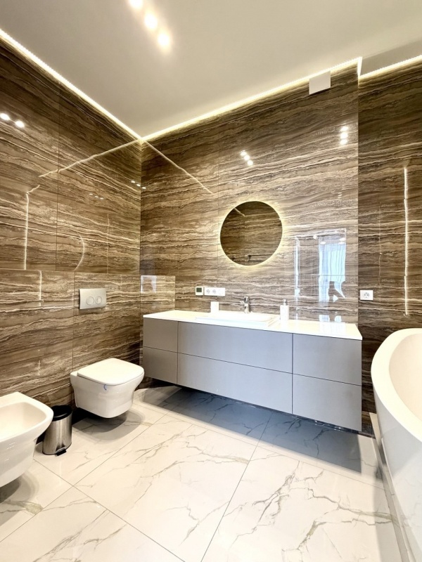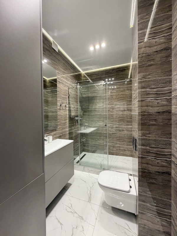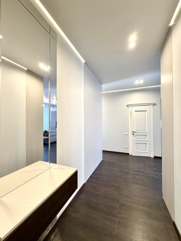 Оренда просторої 2х кімнатної квартири в клубному будинку із закритою територією. Будинок розташований у тихому центрі Шевченківського району, посольській його частині. Поруч уся інфраструктура, парки, садки, фітнес-клуби, басейн. Будинок невисокої поверховості, всього 15 квартир. Немає проблем з комунікаціями. У квартирі є альтернативне джерело електроенергії. Квартира складається з кухні-вітальні та спальні зі своїм санвузлом. Є ще другий санвузол, відкритий балкон з видом на купол церкви і маса місць для зберігання речей. Барний стелаж. Стиль ремонту комфортний мінімалізм. Під будинком є паркінг і двір, де можна зняти паркомісця.
