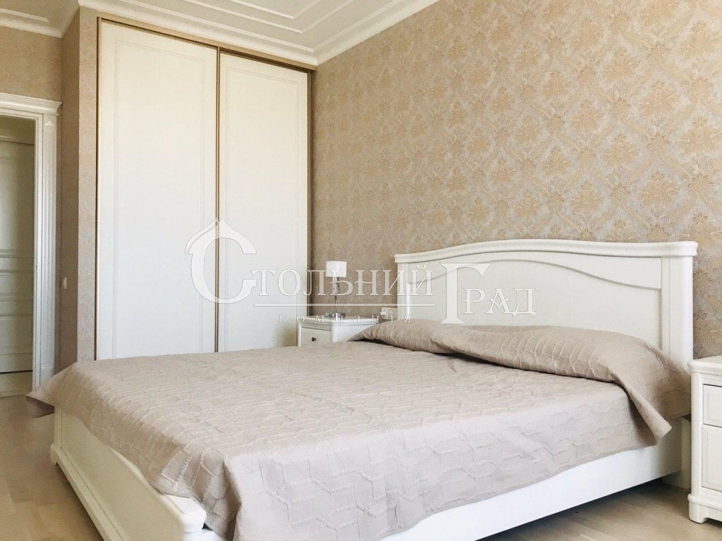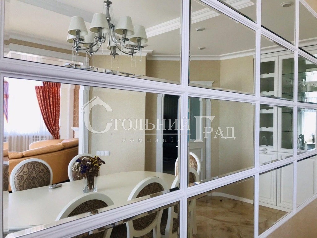 Квартира состоит их 2-х спален, кабинета с раскладным диваном, гостиной, столовой, которая оборудована винным холодильником и кухни. 2 санузла, гардеробная, кладовая, просторный холл.
